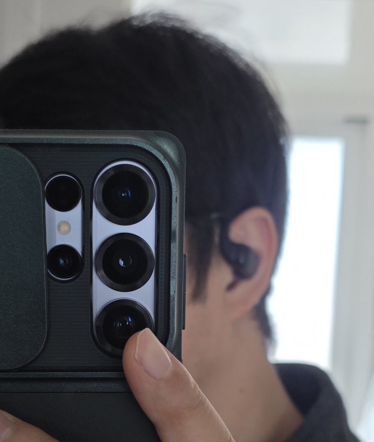 귀에 걸치는 구조 덕분에 무게가 거의 느껴지지 않습니다. 특히 장시간 재택근무·운동·운전할 때 귀가 전혀 아프지 않았습니다. 피부에 닿는 촉감도 자극적이지 않아 계속 착용하고 있게 되더군요.